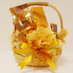 Spoil-icious: Delight your loved one with a basket full of treats, including chocolates, cookies, dried fruit, exotic teas, coffee, hot chocolate and more! | |
